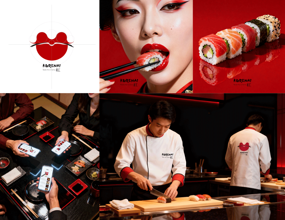 I’ve always been fascinated by the elegance of Japanese minimal design its balance, purity, and quiet strength. To bring an artistic touch to the Kurenai branding, I drew inspiration from the iconic red lips of Kabuki makeup and the striking contrast of Japan’s national flag the white and crimson tones that reflect simplicity, passion, and grace.